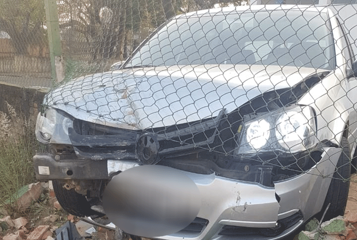 Um carro foi abandonado neste domingo, 13 de setembro de 2020, após colidir no muro de uma empresa na Rua Coronel Marcolino Lopes Barreto, região da Vila Elisabete, São Carlos-SP.