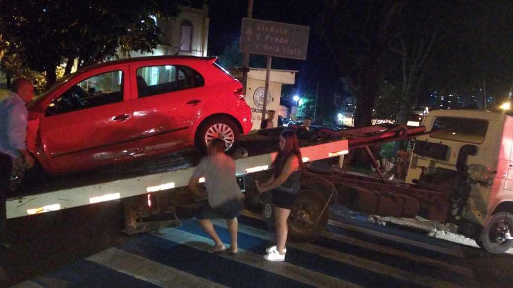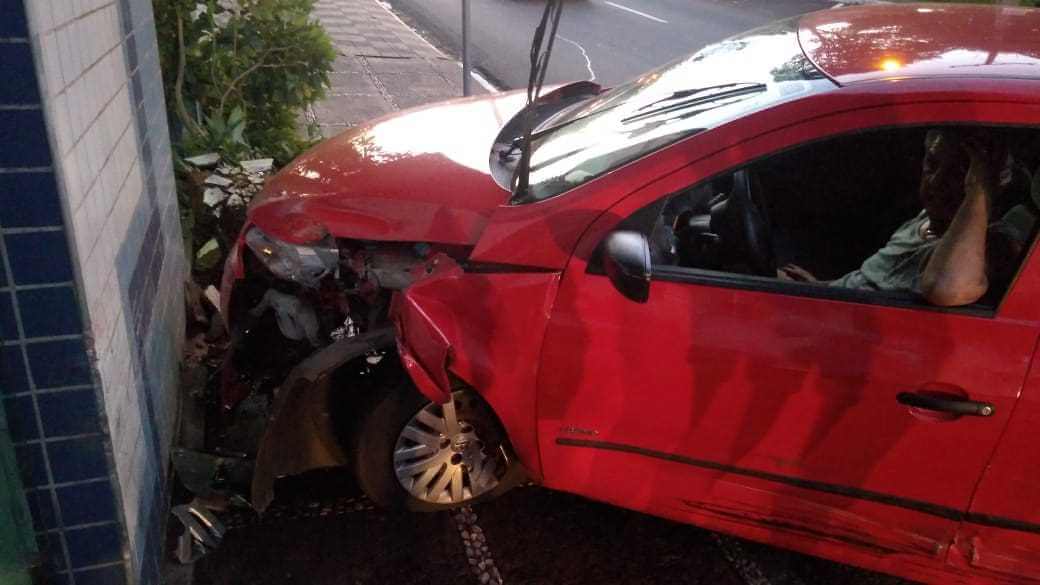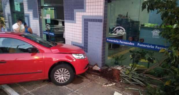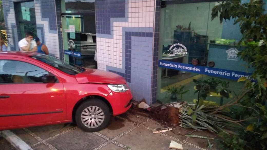 Um carro colidiu na parede de uma funerária nesta tarde de sábado, 27-04-2019, no cruzamrntonda rua Nove de Julho, com a rua Bento Carlos, Centro de São Carlos-SP.
