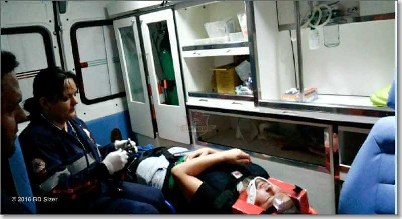 Evandro, de 41 anos, condutor e proprietário do veículo Cruze da cor branca, placas de São Carlos, relatou que transitava pela rua Cândido do Padim, por motivos desconhecidos, perdeu o controle da direção e acabou atingindo o poste do semáforo. Testemunhas relataram que no veículo havia 3 pessoas. Uma ficou levemente ferida e foi socorrida pelo SAMU e encaminhada à Santa Casa. O carro pegou fogo e em poucos minutos já havia sido devorado pelo sinistro. O Corpo de Bombeiros, Polícia Militar e a Polícia Científica estiveram no local e todas as medidas cabíveis foram tomadas. Evandro aparentava estado de embriagues e acabou sendo detido e encaminhado ao Plantão Policial. Ele disse que seu veículo não possuía seguro.