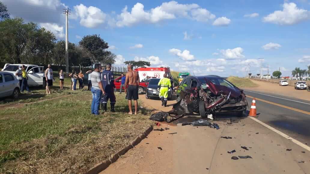 Uma pessoa ficou ferida em após colidir seu carro contra um caminhão nesta tarde de quinta-feira, 21 de maio de 2020, na rodovia Dr. Paulo Lauro (SP-215), São Carlos-SP.