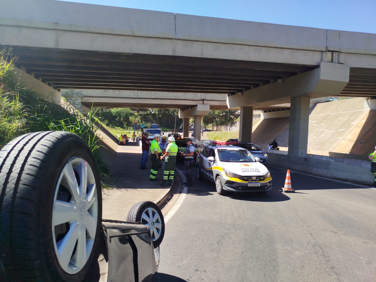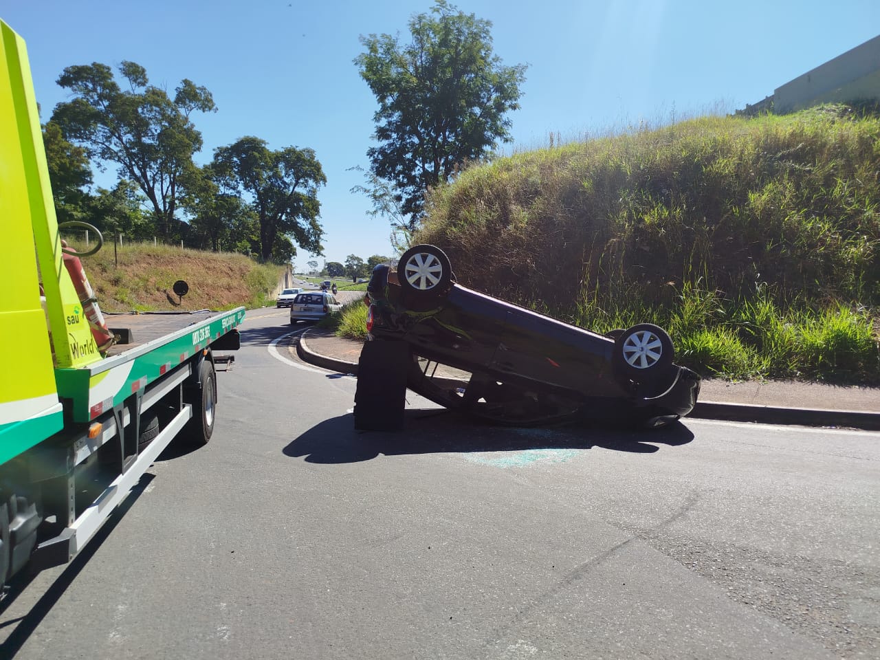 Uma colisão seguida de capotamento ocorrida no final da manhã desta sexta-feira, 16/05/2025, na alça de acesso do bairro Jd. Tangará/rodovia Washington Luís, São Carlos-SP, deixou duas mulhers feridas.