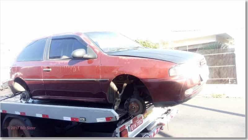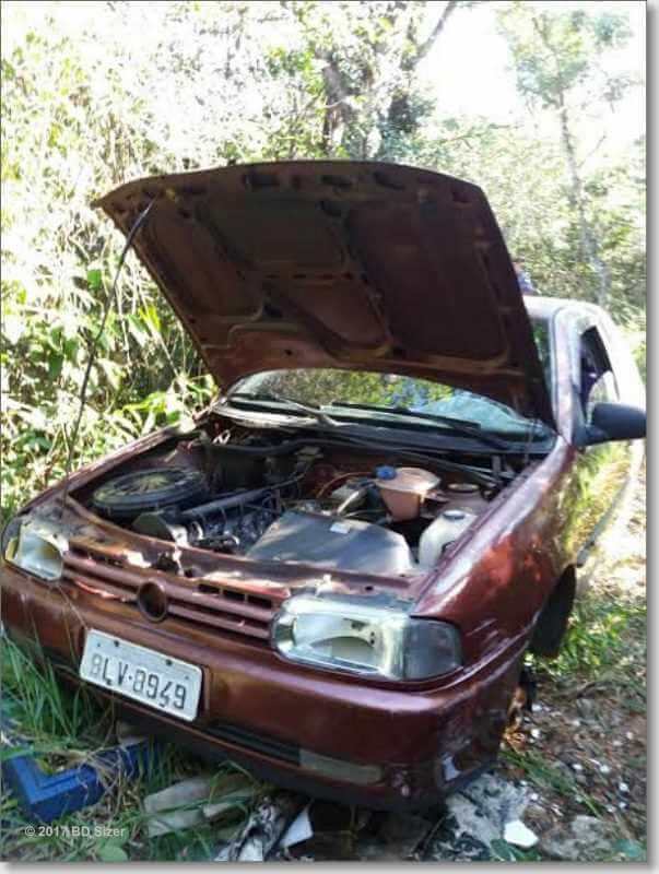 Um veículo Gol com queixa de furto foi localizado nesta tarde de terça-feira, 09-05-2017, depenado em um matagal na região da Represa do Vinte e Nove, São Carlos-SP.