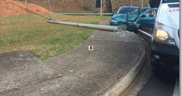 Carro derruba poste e deixa mulher e criança levemente feridas