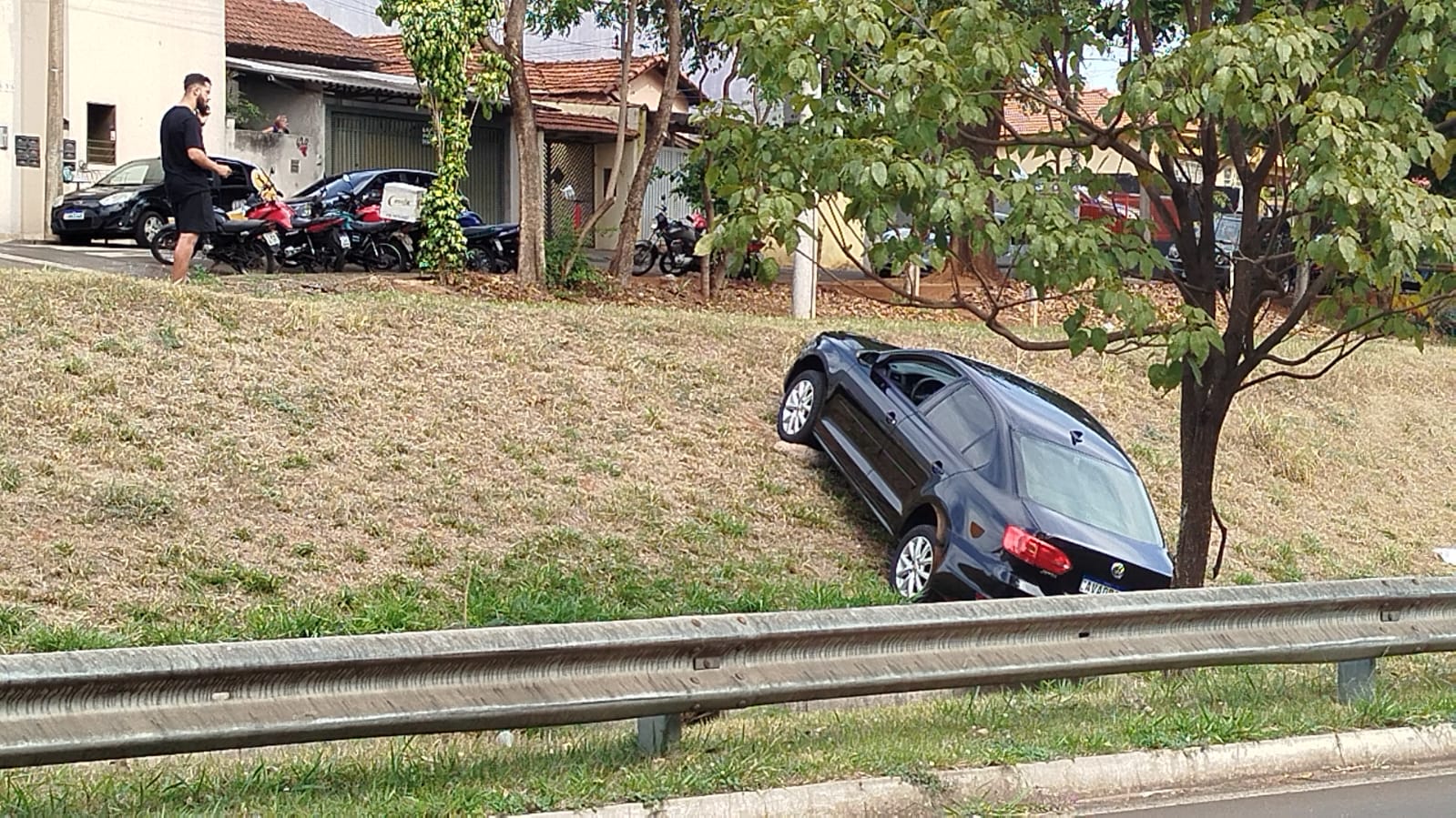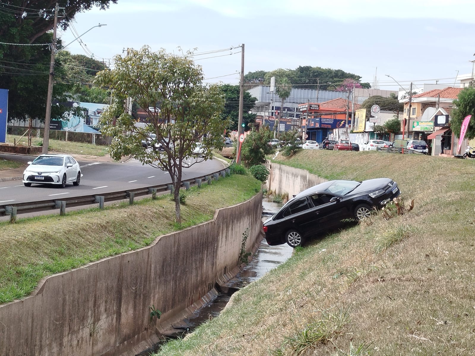 Um carro por pouco não caiu dentro do rio nesta manhã de quinta-feira, 11 de julho de 2024, na Avenida Trabalhador São-carlense, região da Rua Episcopal, São Carlos-SP.