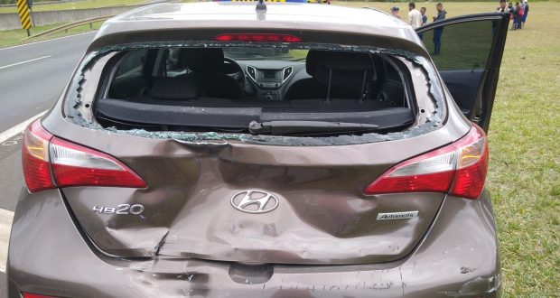 Segundo informações, uma mulher de 50  anos,  conduzia o veículo o HB20,  placas de São Paulo, na alça de acesso da SP-310, na região da  avenida Professor Luiz Augusto de Oliveira,  teve sua traseira atingida por um ônibus conduzido por uma mulher. Ninguém ficou ferido, mas o carro sofreu danos de grande monta.