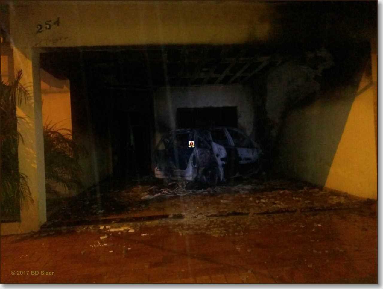 O 3º D.P deverá investigar as causas de um incêndio ocorrido durante esta madrugada de quarta-feira, 22 de novembro de 2017, o qual destruiu um carro na garagem de uma casa na rua Ayer Nucidi , bairro Jd. Embaré, São Carlos-SP.