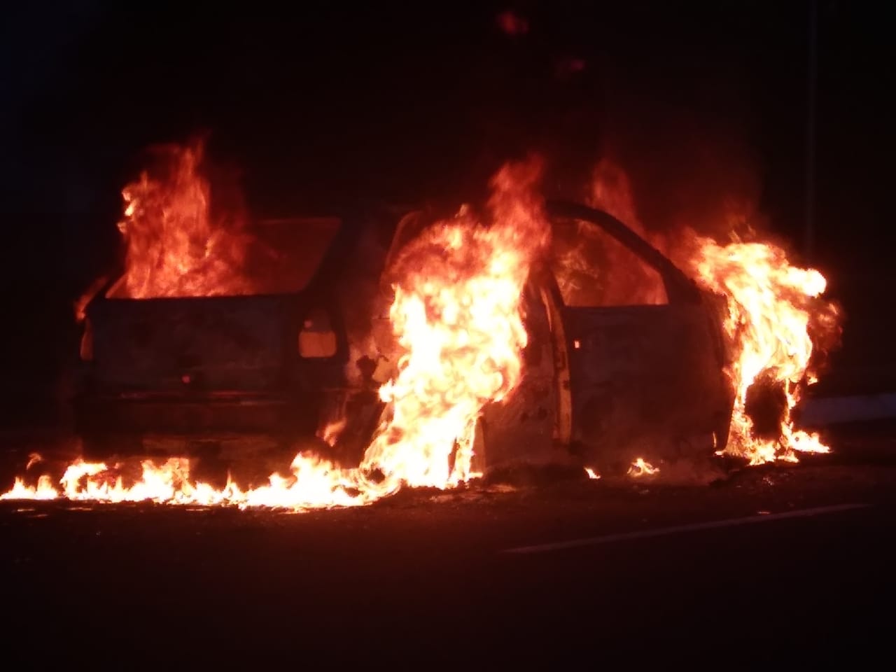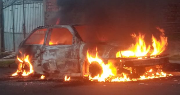 Nesta madrugada de sábado, 15 de janeiro de 2022, um veículo Gol foi consumido por fogo na Rua Alfredo Claudene Manoel, no Residencial Vida Nova São Carlos.