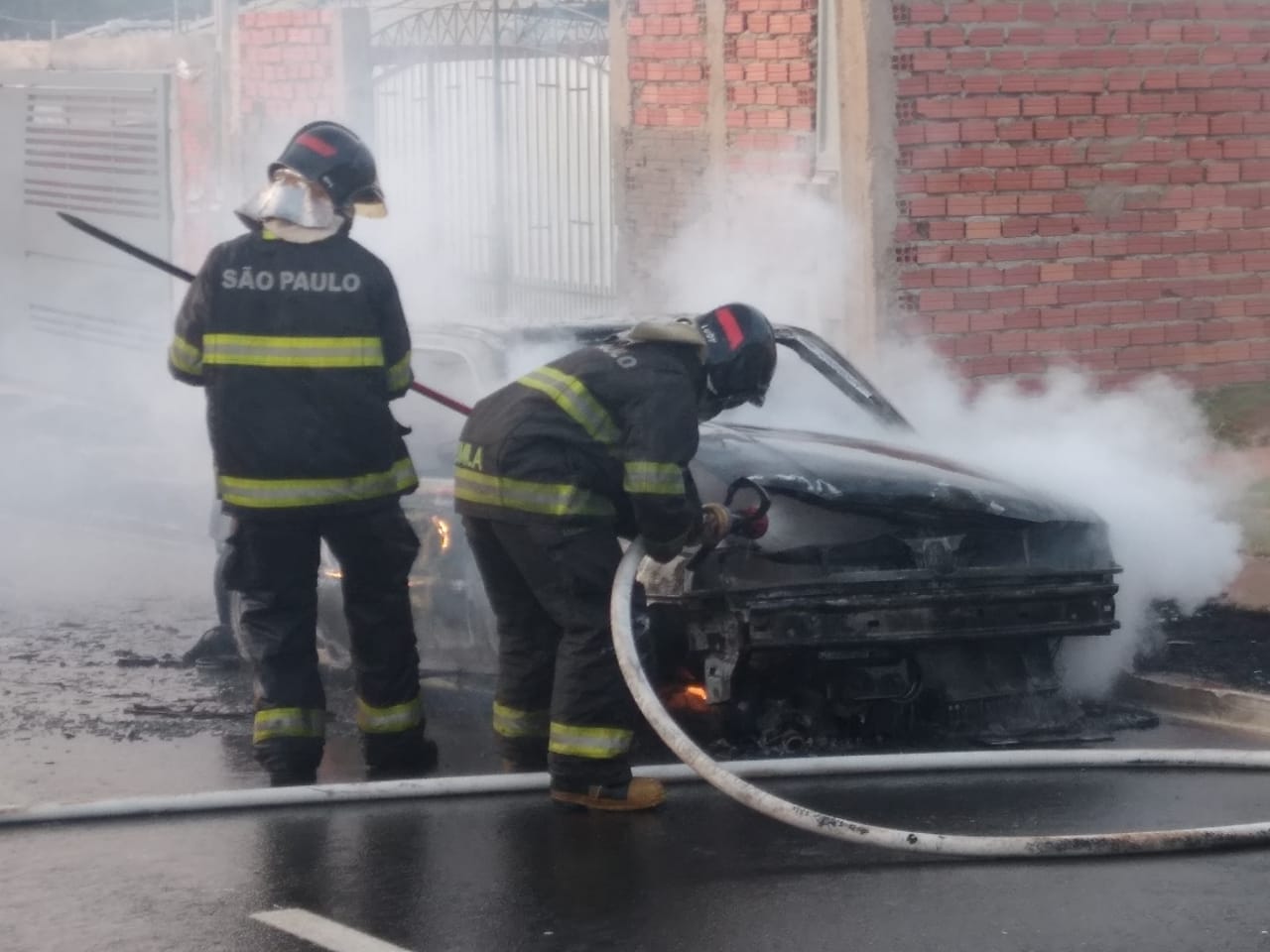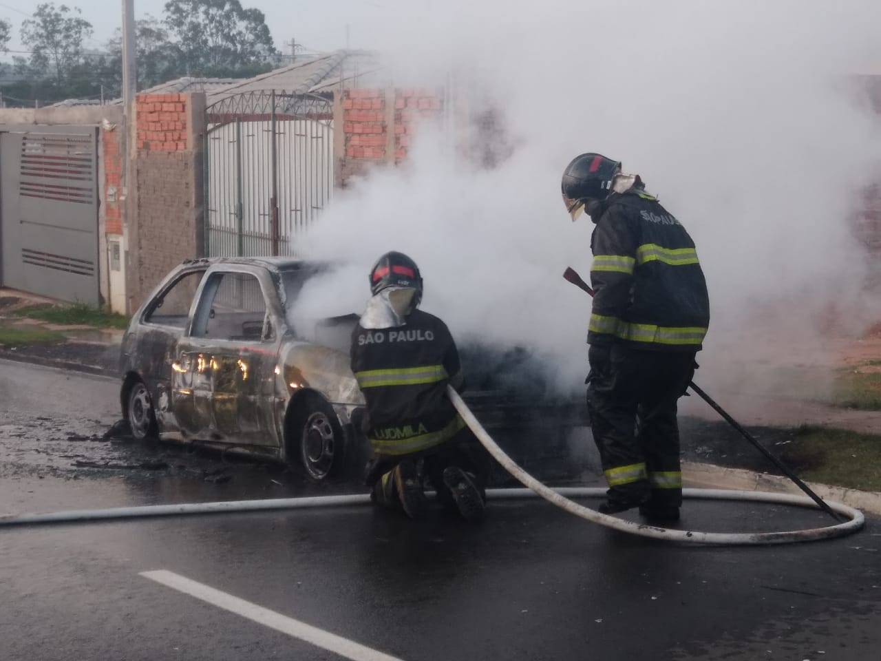 O Corpo de Bombeiros foi acionado e debelou as chamas, mas o veículo foi completamente consumido pelo fogo. Moradores disse que o carro não pertence ninguém daquela rua.