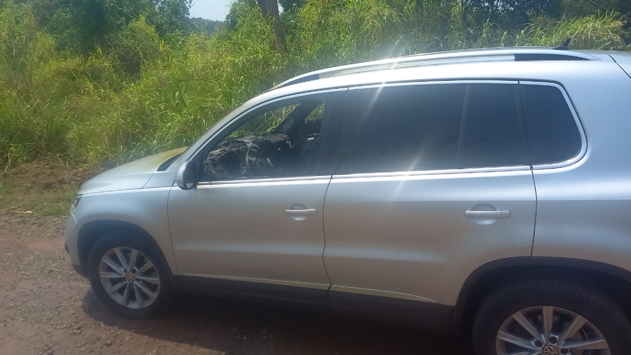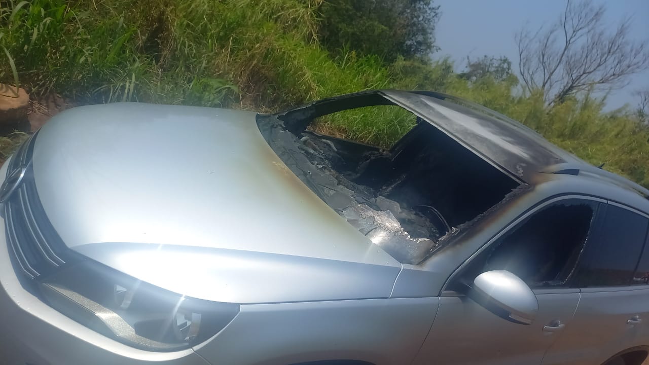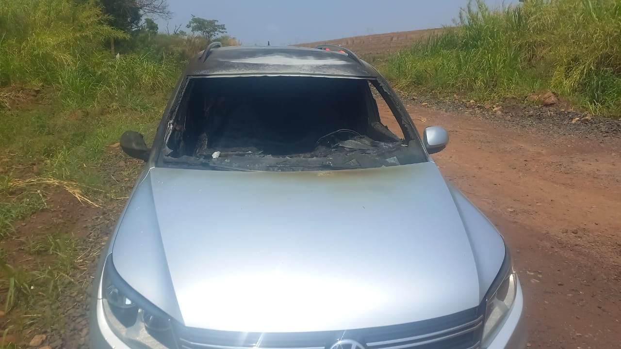 Um veículo Tiguan da cor prata, foi localizado parcialmente carbonizado na tarde de quinta-feira, 28-09-2023, em uma estada de terra na região da Água Fria, São Carlos-SP.