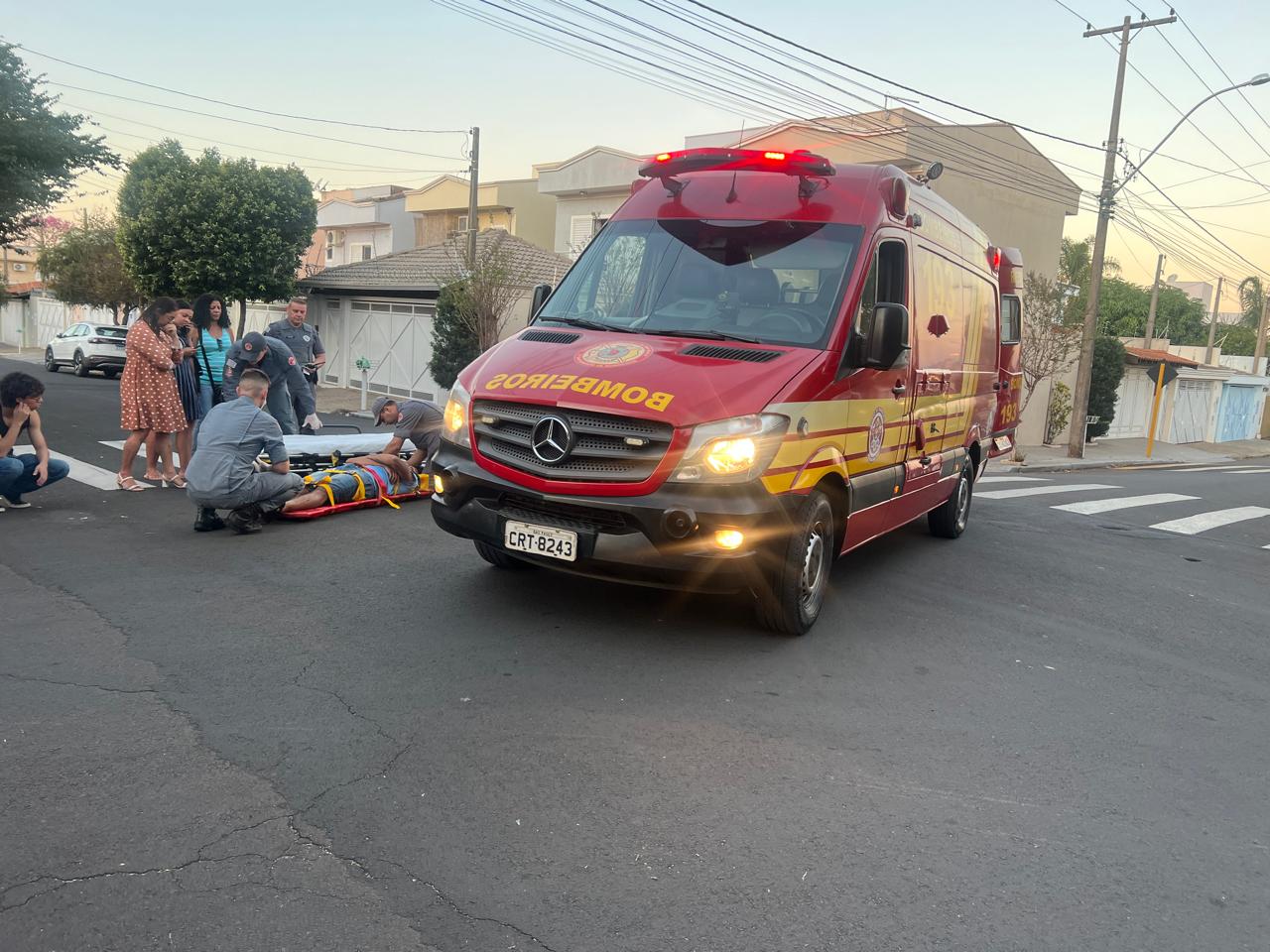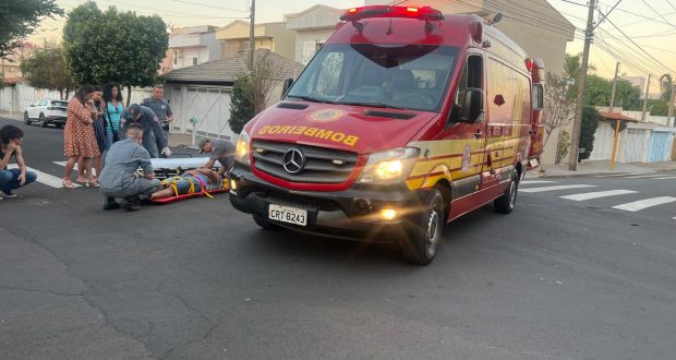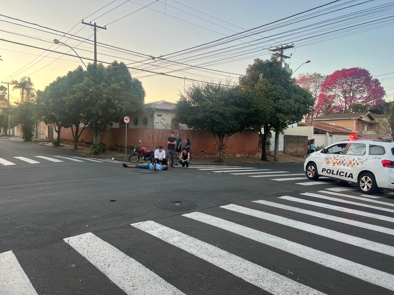 De acordo com informações, a moto era conduzida pelo jovem de 22 anos e o carro por uma mulher. Após o acidente, o jovem foi ao solo e ficou ferido. O Corpo de Bombeiros e a Polícia Militar estiveram no local e vítima foi socorrida para a Santa Casa. A condutora do carro não ficou ferida. Todas as medidas cabíveis, foram tomadas pela PM.