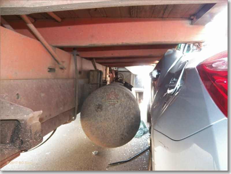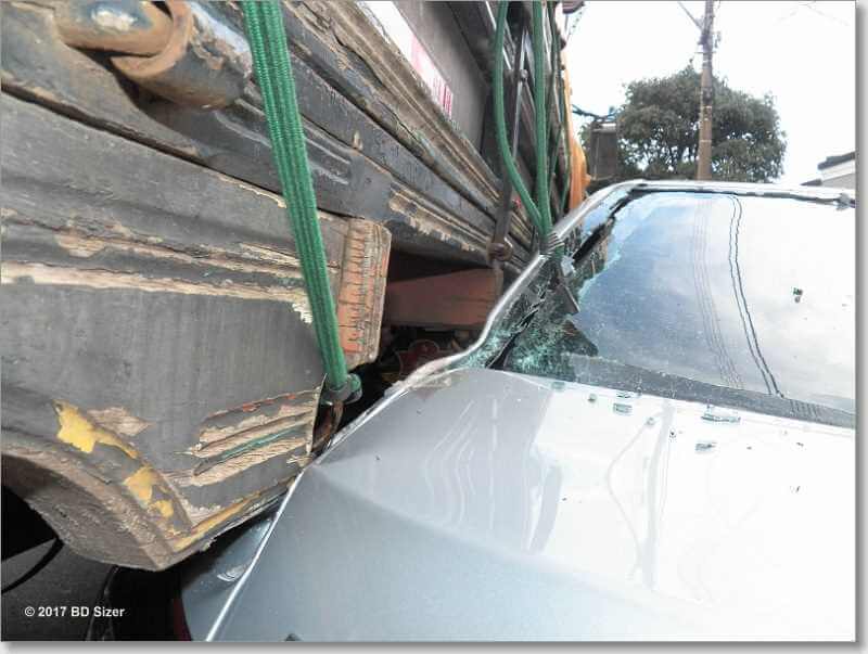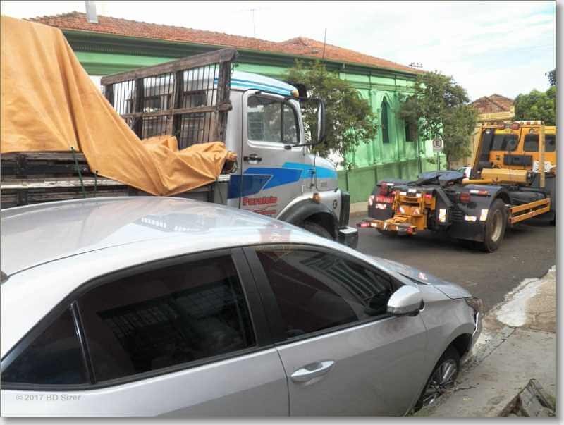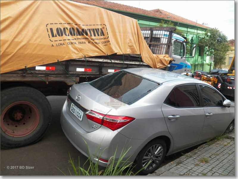 Um carro foi prensado por um caminhão por volta das 17: 40 desta sexta-feira, 20-01-2017, na rua Dom Pedro II, entre a rua Conde do Pinhal e a rua Major José Inácio, Centro de São Carlos-SP.