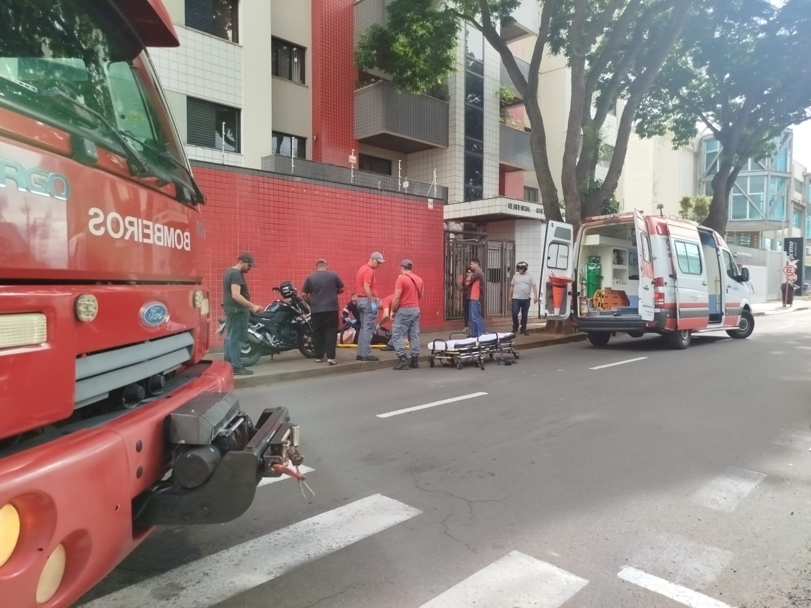 Uma mulher foi socorrida nesta tarde de sexta-feira, 14 de fevereiro de 2025, após se envolver em um acidente de trânsito na Rua Carlos Botelho, quase esquina com a Rua São Joaquim, Centro de São Carlos-SP.
