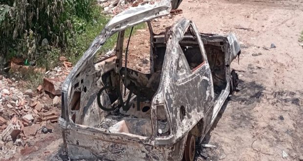 Em patrulhamento pela região do bairro Antenor Garcia, São Carlos-SP, a PM localizou na manhã do dia 02-01-2023, um veículo completamente queimado.