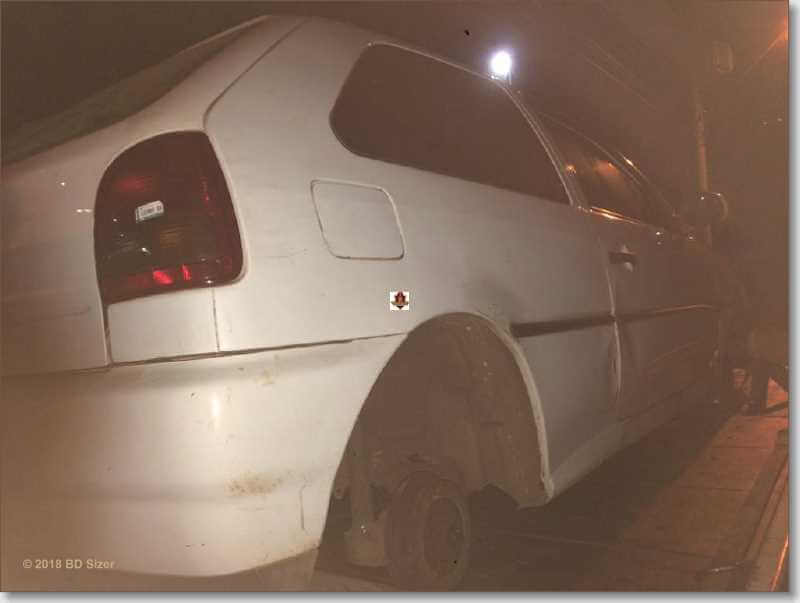 Segundo boletim de ocorrência, por volta das 22:30, a vítima de 22 anos procurou a Polícia Civil e registrou boletim de ocorrência de furto do veículo ocorrido na rua Tiradentes, bairro Vila Elisabete. Durante a madrugada o carro foi encontrado no bairro Planalto Verde. Ninguém foi preso. O carro estava sem as rodas, bateria, estepes e som.