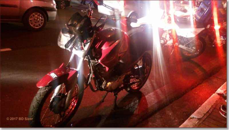 Segundo a PM, M.B.S. estava pela Avenida São Carlos quando teve a sua frente um carro que estava pela rua Jacinto Favoreto. O motociclista colidiu na lateral do carro e foi ao solo. O SAMU foi acionado, mas ele não quis ser socorrido, alegando estar bem. A.L.F, de 38 anos, motorista do carro parou e prestou todo atendimento necessário a vítima. A PM também esteve presente.