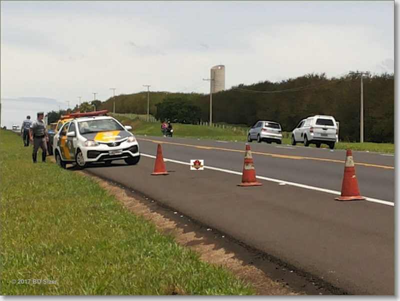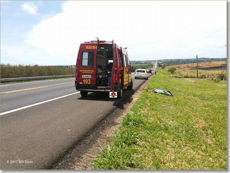 Os policiais rodoviários, sub- tenente Donda, cabo Fabiano, soldados Dias e Everton estiveram no local e tomaram todas as medidas cabíveis. A Polícia Científica esteve pressente e irá apurar as causas do acidente com vítima fatal.