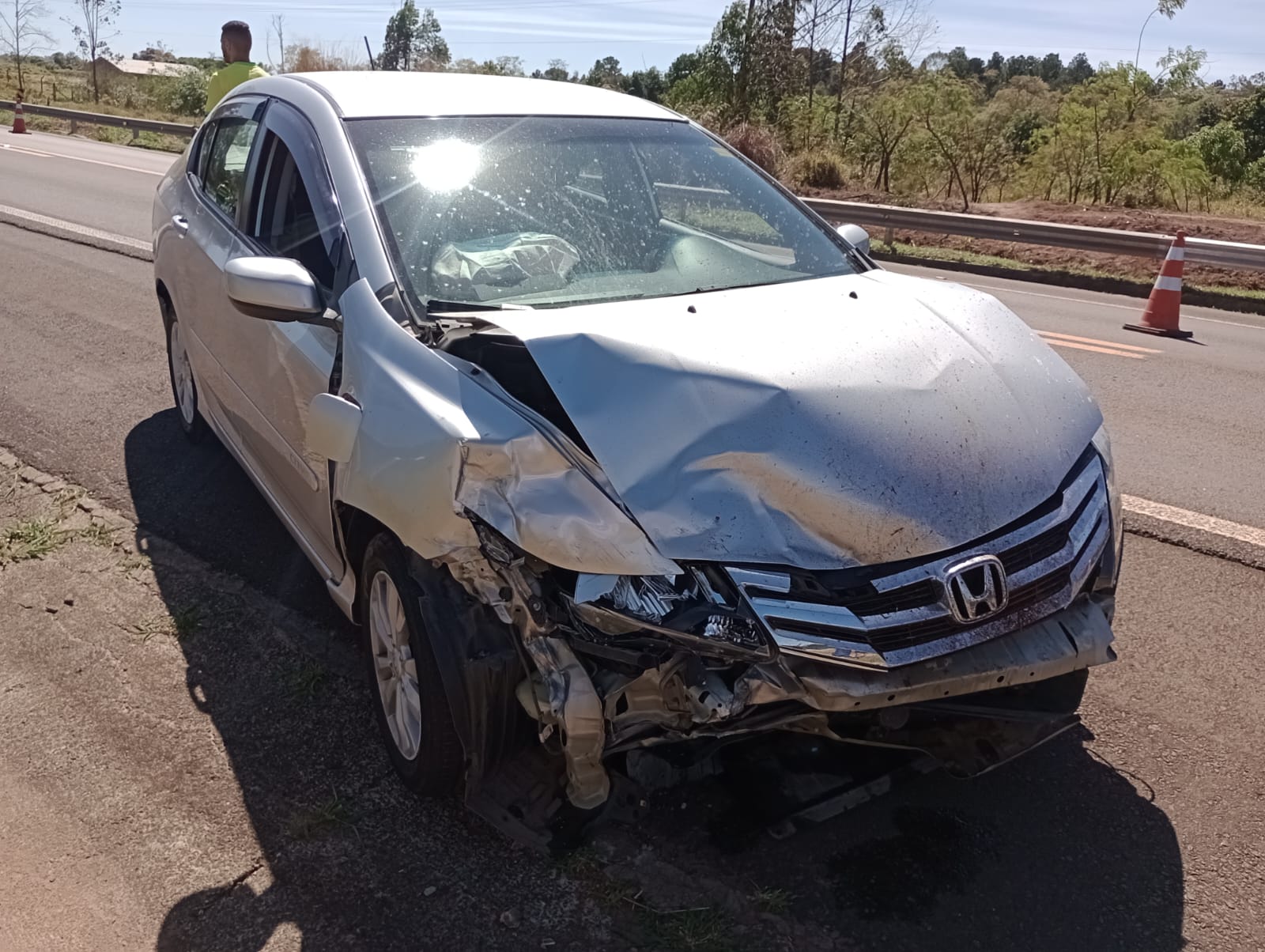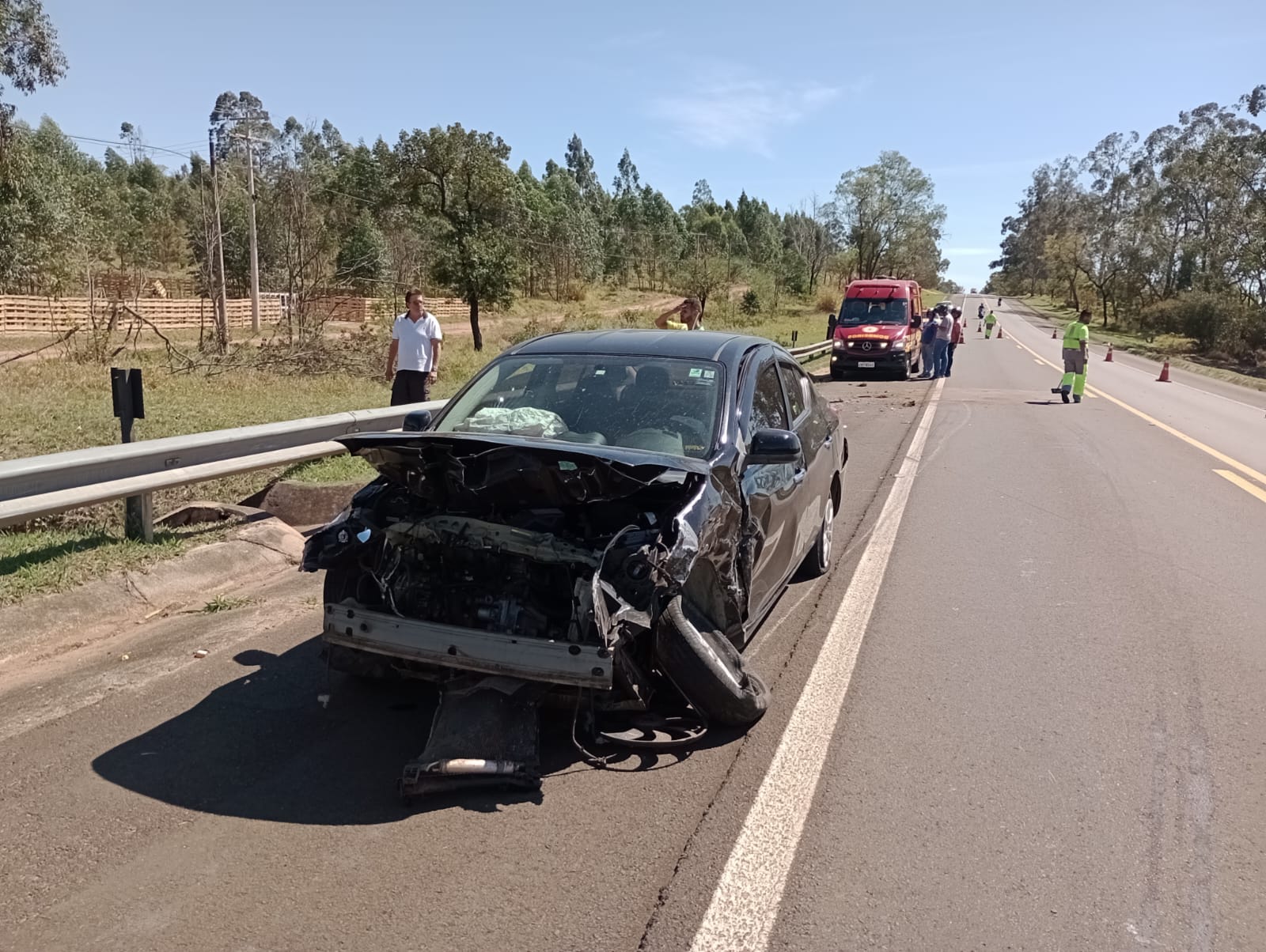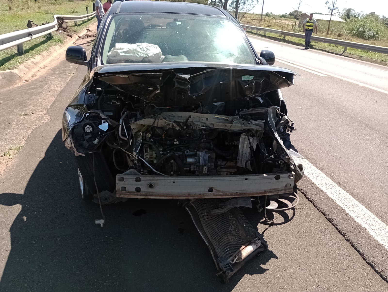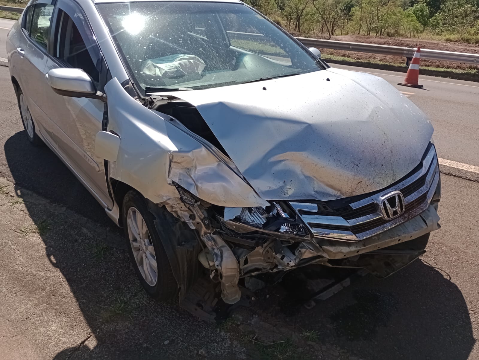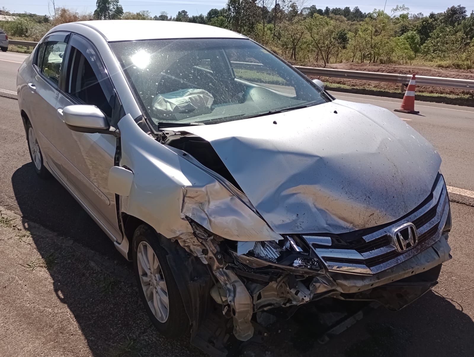 De acordo com informações, o veículo Versa da cor preta, estava transitando no sentido Broa/São Carlos, conduzido por uma mulher de 42 anos, teria invadido a pista contrária e colidido frontalmente com um Honda Cit da cor prata, placas de Campinas, conduzido por um senhor de 64 anos. Devido o choque, o Versa rodou na pista e colidiu com a defensa metálica. Por sorte ninguém ficou ferido. A Polícia Militar Rodoviária esteve no local e tomou as medidas cabíveis. Os seis ocupantes dos dois carros nada sofreram.