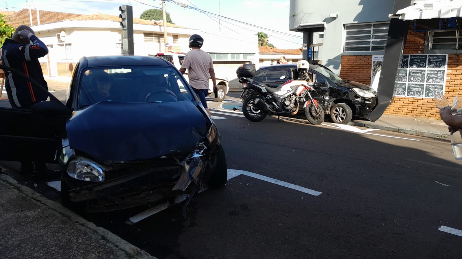 Um homem ficou levemente ferido em um acidente de trânsito ocorrido nesta tarde de quarta-feira, 1 de maio de 2024, na Rua Sete de Setembro, cruzamento com a Rua São Paulo, São Carlos-SP.