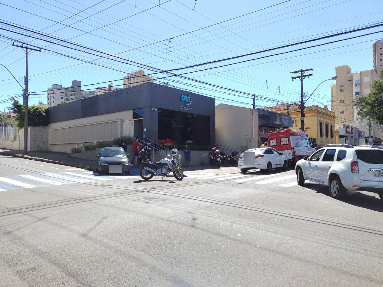 Nesta manhã de sexta-feira, 9 de abril de 2021, dois carros se chocaram na Rua Marechal Deodoro, cruzamento com a rua São Joaquim, Centro de São Carlos-SP.