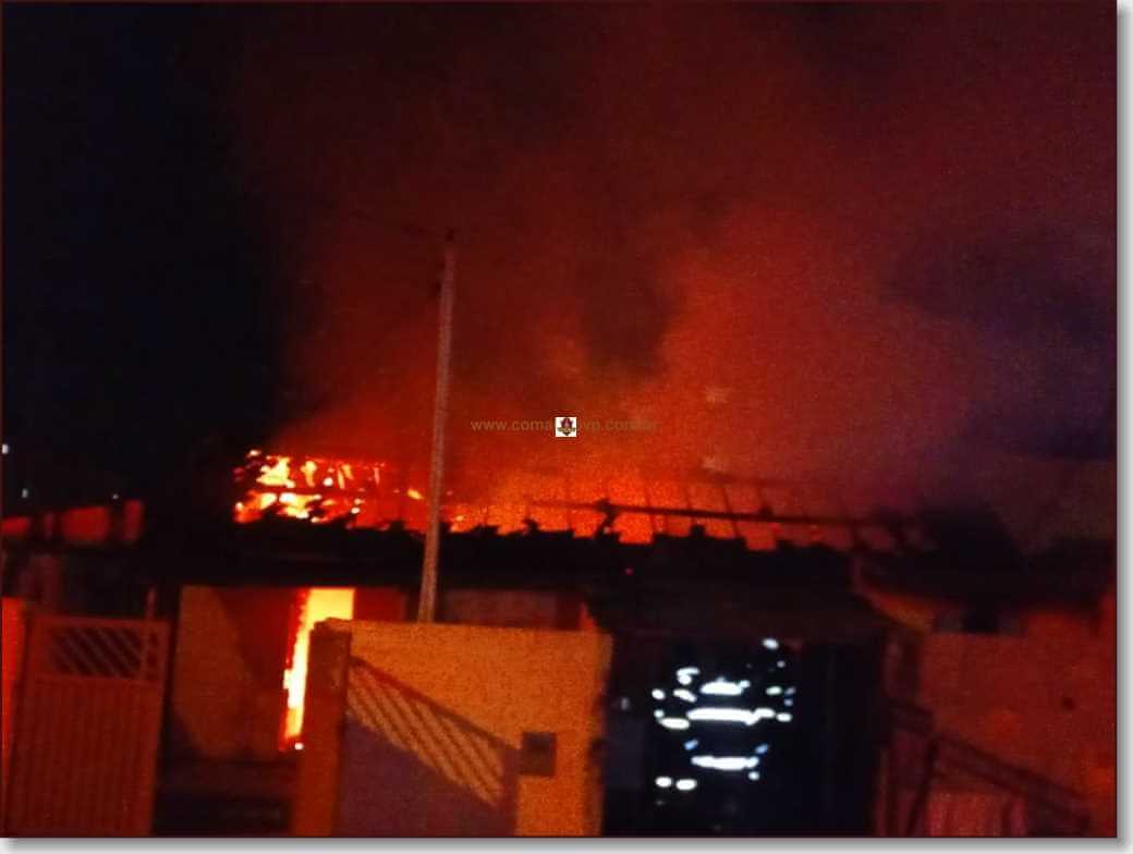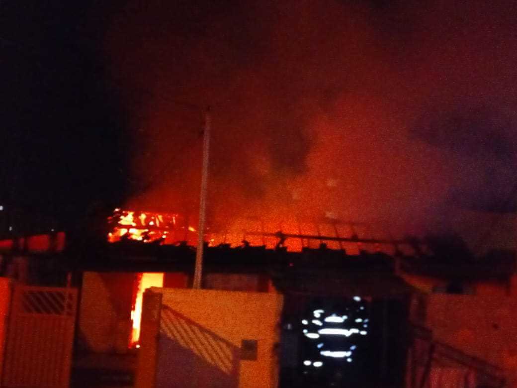 Um casa foi destruída por um incêndio no inicio da noite desta segunda-feira, 24 de junho de 2019, na rua Santos Dumont, bairro Vila Marina, São Carlos-SP.