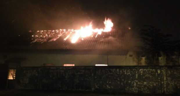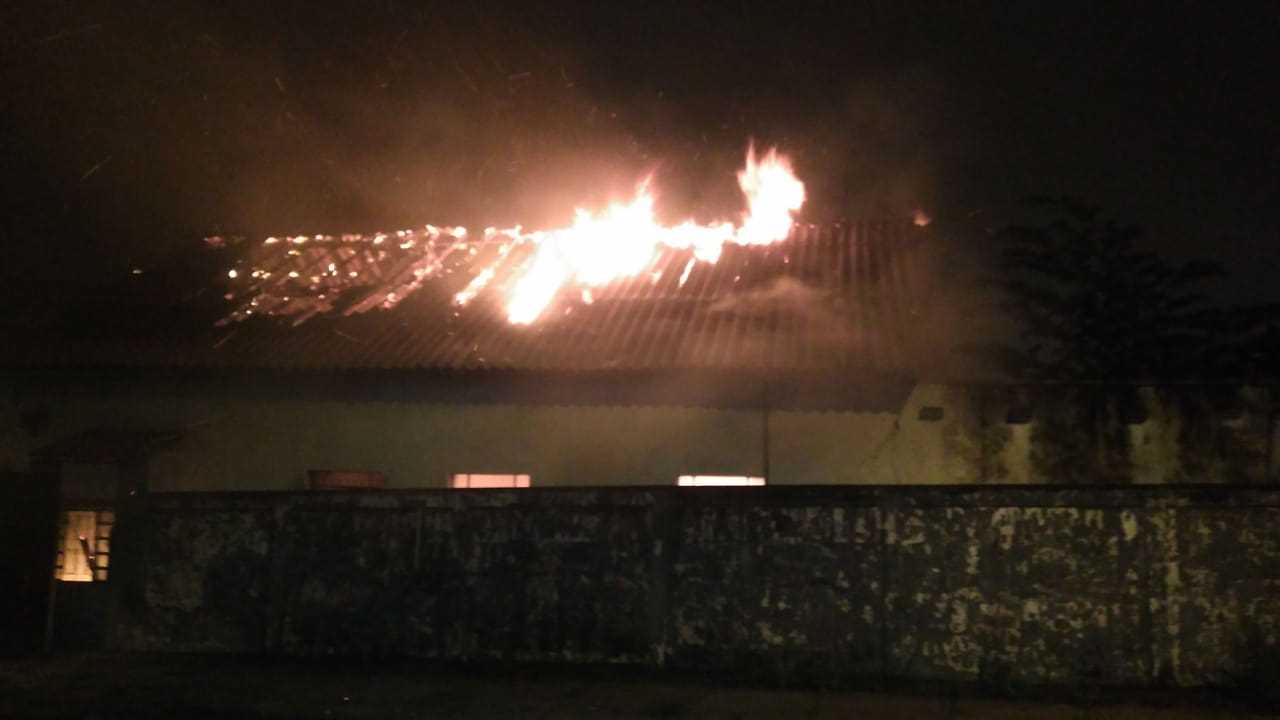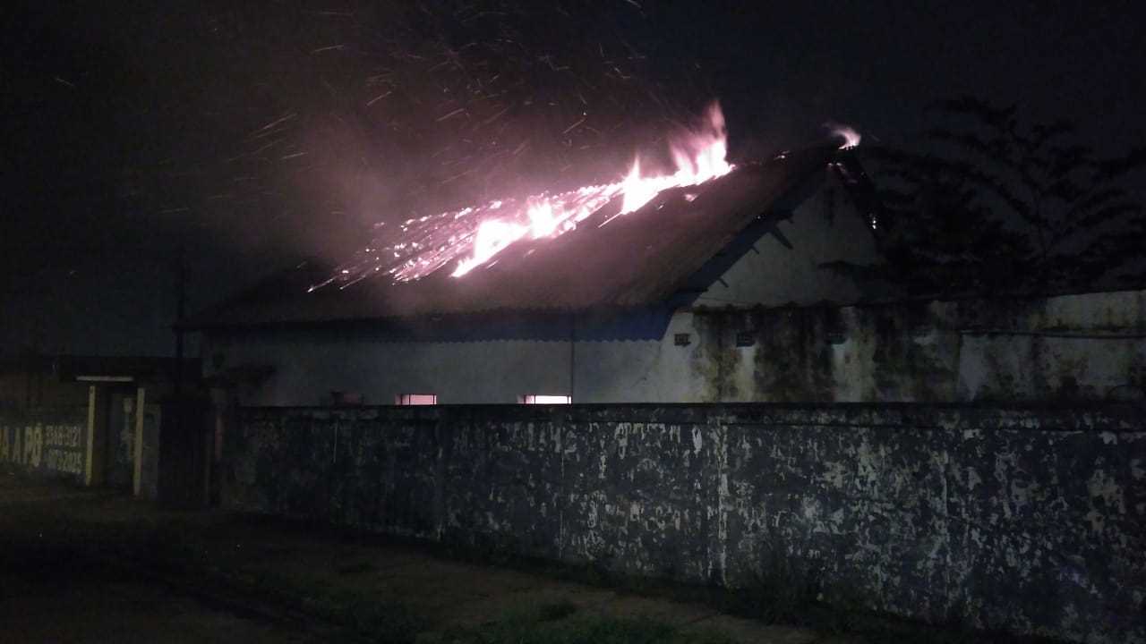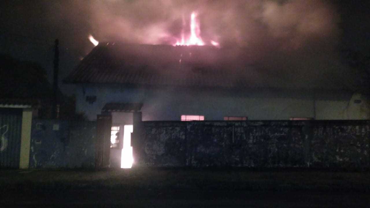Uma casa situada na próximo ao pontilhão da Travessa Oito, região do bairro Vila Prado, São Carlos-SP, pegou fogo na noite de quarta-feira, 10-10-2018.