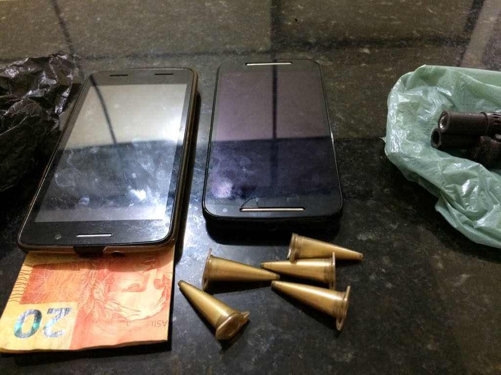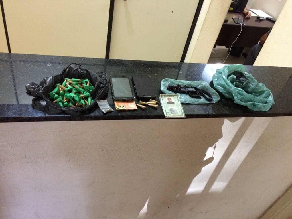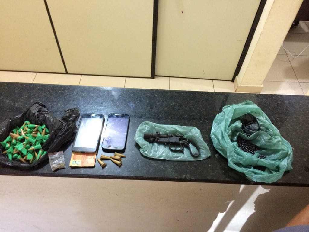 Segundo informações, os cabos Alexsandro e Simone estavam em patrulhamento quando se depararam com um jovem entregando drogas para um indivíduo em um carro. O suposto traficante foi detido e com o mesmo foi localizado entorpecente e dinheiro. Dentro de sua casa foram localizados mais pinos de cocaína, uma garrucha e com sua amásia de 15 anos foi encontrada uma porção de maconha. O casal foi encaminhado ao Plantão Policial onde aguarda a decisão da autoridade policial.