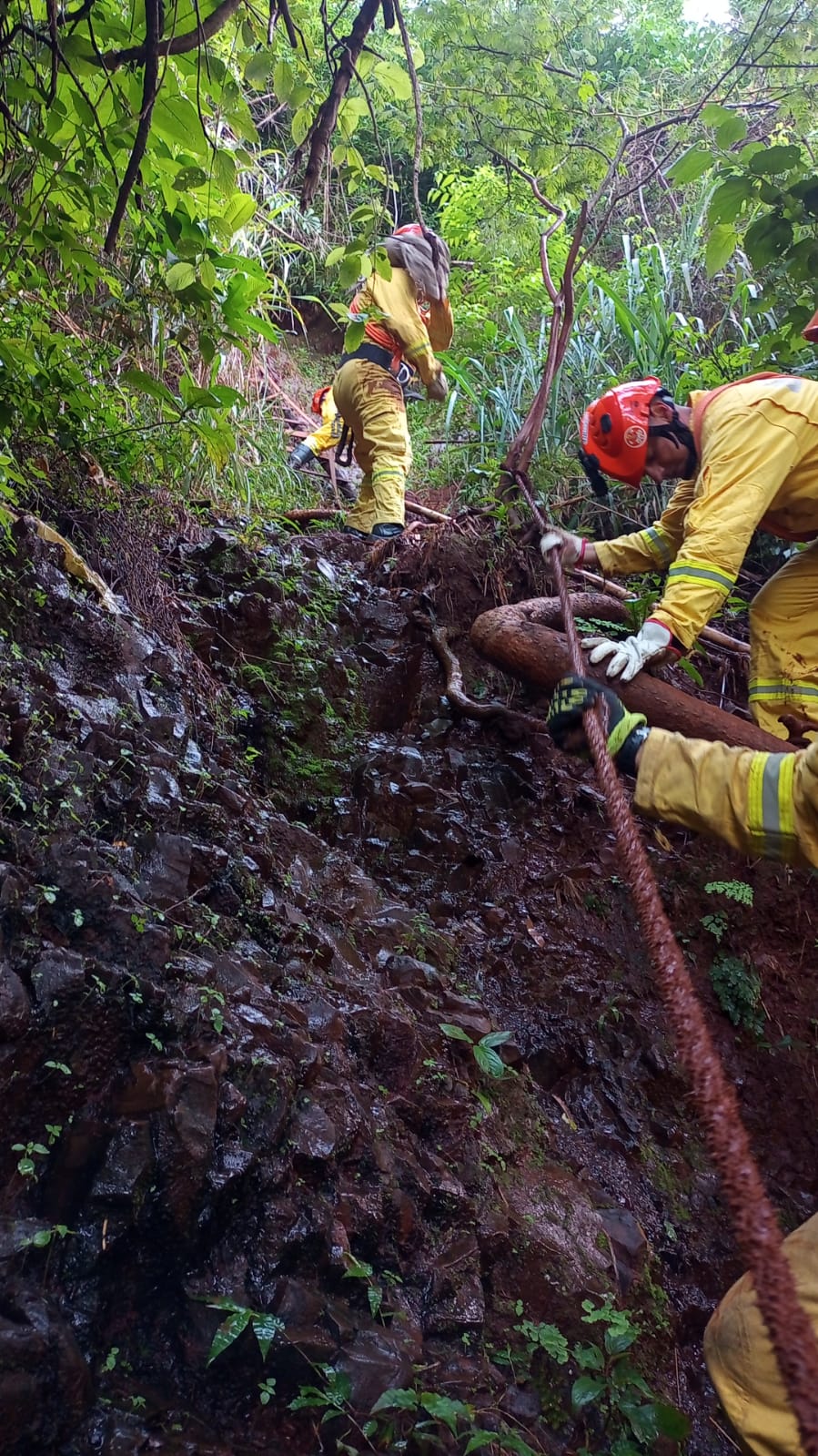 Segundo informações, o casal chegou ao local por volta das 10h00. Quando tentava retornar, não conseguiu subir. Através de um aplicativo de localização, populares foram avisados e acionaram o Corpo de Bombeiros. A equipe do sargento Poletti foi para o local e resgatou a mulher e homem. A mulher de 29 anos teve que sair pranchada, pois não conseguia andar. O casal não estava ferido e foi embora para casa.