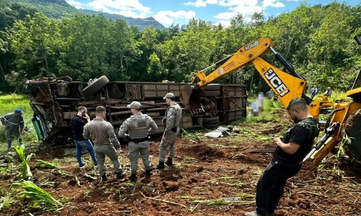 Um ônibus com estudantes e professores do curso de Paisagismo do Colégio Politécnico da Universidade Federal de Santa Maria (UFSM) caiu na manhã desta sexta-feira (4) em uma ribanceira, na altura do município de Imigrante (RS), no Vale do Taquari. Segundo o Corpo de Bombeiros, o acidente resultou em sete mortes. As vítimas ainda não foram identificadas. O veículo transportava 35 pessoas no ...