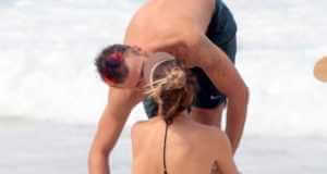 Fernanda Lima e Rodrigo Hilbert foram flagrados em clima de muito romance nesta segunda-feira, 27-03-2017, na praia no Leblon, na Zona Sul do Rio de Janeiro. Fernanda chamou a atenção pelo shape fininho e as tatuagens, que ficaram aparentes por conta do biquíni escolhido, preto e frente única. O casal levou os gêmeos. Fonte: Ego