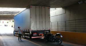 Uma carreta ficou presa nesta manhã de quarta-feira, 14/04/2021, no Pontilhão do Santa Maria, São Carlos-SP. Segundo informações, o motorista estava no sentido bairro Santa Maria/Vila Nery, mas devido a altura, a carreta ficou retida. A GM foi acionada e tomou as medidas cabíveis.