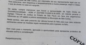 NOTA ENVIADA PELA PREFEITURA MUNICIPAL: O Procurador Geral do Município (PGM), Alexandre Carreira Martins Gonçalves, garantiu nesta quinta-feira (18/02) que o município vai entrar com recurso pedindo a nulidade do julgamento ocorrido no último dia 10 de fevereiro no qual o Tribunal de Justiça do Estado de São Paulo suspende o pagamento do 14º salário, prêmio assiduidade e salário ...