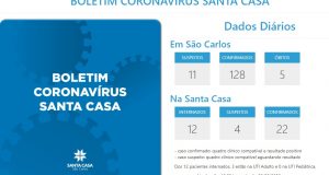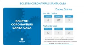 INTERNADOS POR COVID-19 NA SANTA CASA SÃO CARLOS – 30/05/2020 A Santa Casa informa neste sábado (30/05), que o número de casos confirmados no hospital subiu de 22 para 24. Trata-se de um homem, 42 anos, internado hoje (30/5) em leito de enfermaria e de um outro homem, 36 anos, também internado em leito de enfermaria desde o dia 28/5. ...