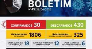 NÚMEROS COVID-19 SÃO CARLOS – 29/04/2020 A Vigilância Epidemiológica de São Carlos informa nesta quarta-feira (29/04) a situação epidemiológica do município para o novo coronavírus (COVID-19). Subiu de 29 para 30 os casos positivos para a doença, com 2 mortes confirmadas e uma ainda suspeita em investigação. 18 óbitos já foram descartados. Dos 30 casos positivos confirmados, 22 não foram ...