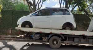 Um veículo Idea da cor branca, placas de São Carlos-SP, foi localizado sem as rodas nesta tarde de domingo, 16-02-2020, no Vinte Nove. Segundo informações, a PM foi acionada para o local e o carro ainda não tem queixa. O veículo foi encaminhado ao Plantão Policial. Acredita-se que a vítima ainda nem sabe que o carro foi furtado. Fotos: CVP