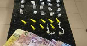 Dois jovens foram detidos com drogas na noite de sábado, 02-06-2018, na rua Domingos de Angelies, São Carlos-SP. Segundo boletim de ocorrência , por volta das 20:50 policiais da modalidade DEJEM estavam, em patrulhamento preventivo quando avistaram dois indivíduos do sexo masculino saindo de uma casa. Com um foram localizados 08 camisetas novas, 03 bermudas, 35 porções de maconha . ...