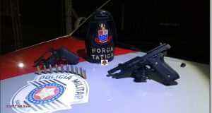 A Polícia Militar através de uma equipe da Força Tática deteve um homem com uma réplica de arma de fogo e um revólver calibre 38 municiado nesta noite de quarta-feira, 4 de outubro de 2017, no bairro Jd. Bandeirantes, São Carlos-SP. Segundo informações, o sargento Guillen, cabo Jeferson e soldado Tiago foram acionados para atender uma briga de casal. Quando ...