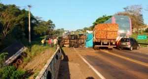 Um grave acidente na tarde desta sexta-feira (9) envolveu pelo menos quatro caminhões na rodovia Comandante João Ribeiro de Barros, (SP-255), próximo ao trevo da Sachs, em Araraquara-SP. Segundo informações, dois caminhões seguiam no sentido Araraquara/Boa Esperança do Sul, quando um dos veículos, carregado de com madeiras, invadiu a pista contrária para uma ultrapassagem e colidiu frontalmente contra um caminhão ...