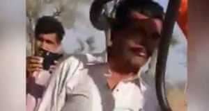 Um acidente trágico matou um turista na cidade de Jodhpur, Índia. Em um vídeo gravado e publicado na internet, o homem aparece tirando foto com uma cobra venenosa quando, de repente, o animal pica o rosto dele. O rapaz apenas coloca a mão no rosto e sai. Segundo a imprensa local, o homem começou a perder a consciência e foi ...