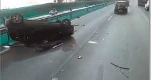 Um carro capotou nesta tarde de quarta-feira, 16-11-2016 na rodovia Washington Luiz, na subida do Chibarro, Araraquara-SP. A nossa equipe recebeu as imagens de internauta que se deparou com o veículo capotado. Aparentemente ninguém ficou ferido, mas o fato atraiu a atenção de curiosos que passavam pelo local. Foto: colaborador