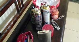 Uma mulher de 48 anos foi detido na noite anterior por uma equipe da Guarda Municipal, ao ser flagrada pichando o prédio da Suzantur, situado na Avenida São Carlos, esquina com a rua Conde do Pinhal, Centro São Carlos-SP. A mulher foi encaminhada ao Plantão Policial e liberada. Com a mesma foram localizados vários frascos de tinta e um canivete.