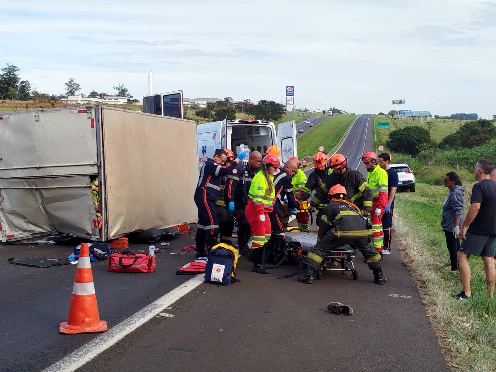 Um homem de 42 anos foi socorrido nesta manhã de sábado, 10 de maio de 2025, após um grave acidente no km 236 da rodovia Washington Luís, São Carlos-SP. De acordo com informações preliminares, um caminhão tombou e o condutor ficou preso debaixo. O SAMU, o Corpo de Bombeiros e a concessionária foram acionados e a vítima foi retirada e ...