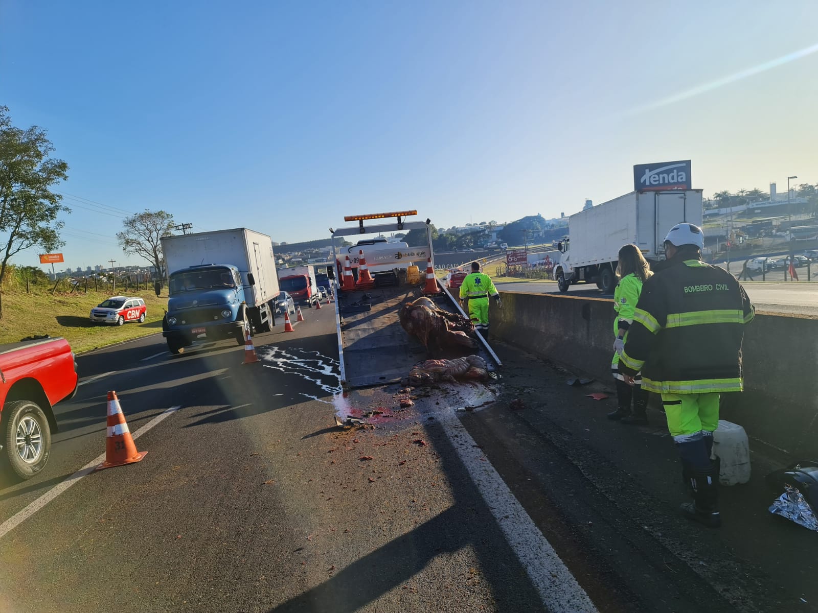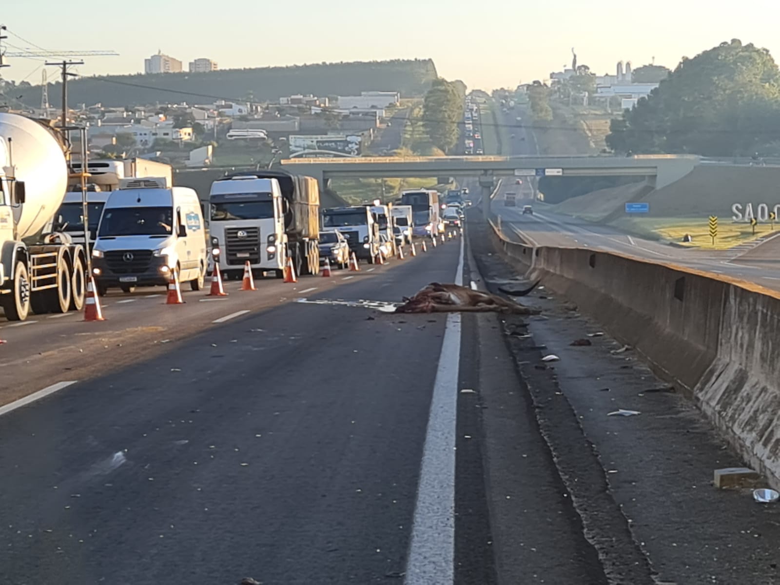 Um cavalo morreu e um homem ficou ferido em um acidente de trânsito ocorrido por volta das 6:10  desta sexta-feira, 17 de junho de 2022,  no km 228+500 metros  da rodovia  Washington Luís, São Carlos-SP.