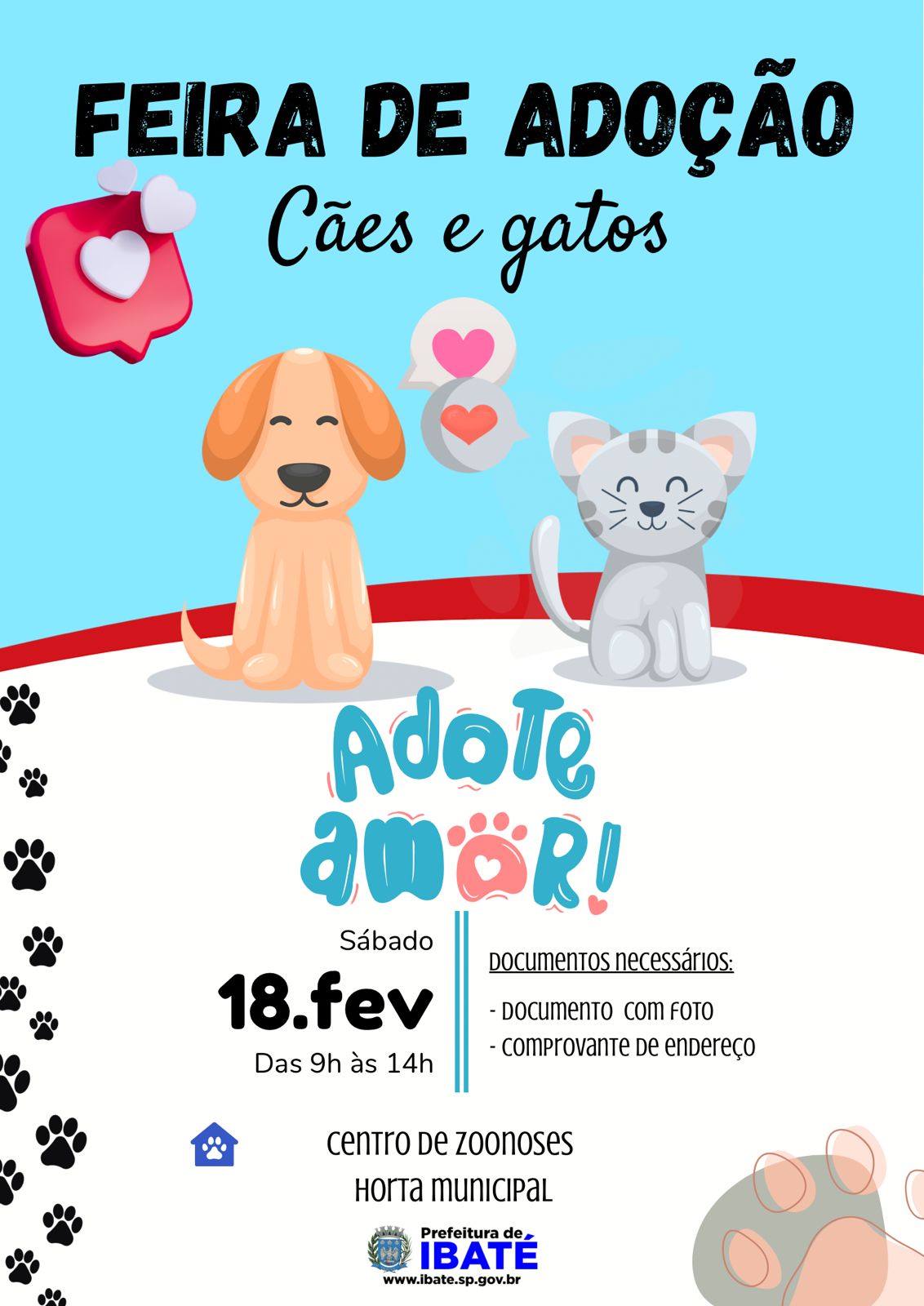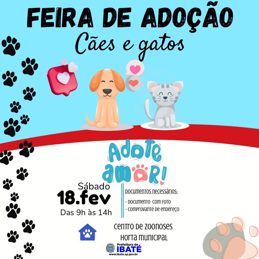 Ela lembra que além da realização dessa feira de adoção, a Prefeitura de Ibaté, constantemente, faz a divulgação de fotos dos cães e gatos (filhotes ou adultos) em suas páginas oficiais no Facebook e Instagram [@prefeituradeibateoficial], com o objetivo de aumentar a adoção consciente desses animais.