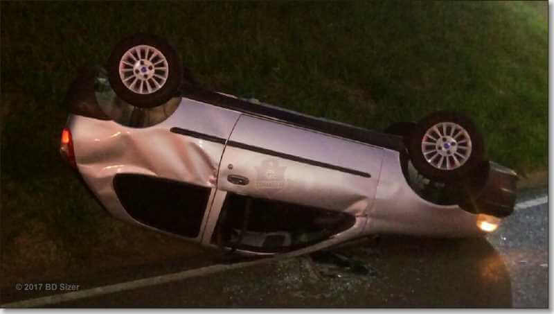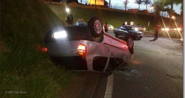 Choque entre dois carros acaba em capotamento e motorista é preso