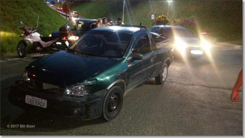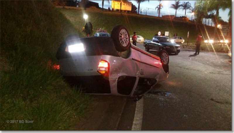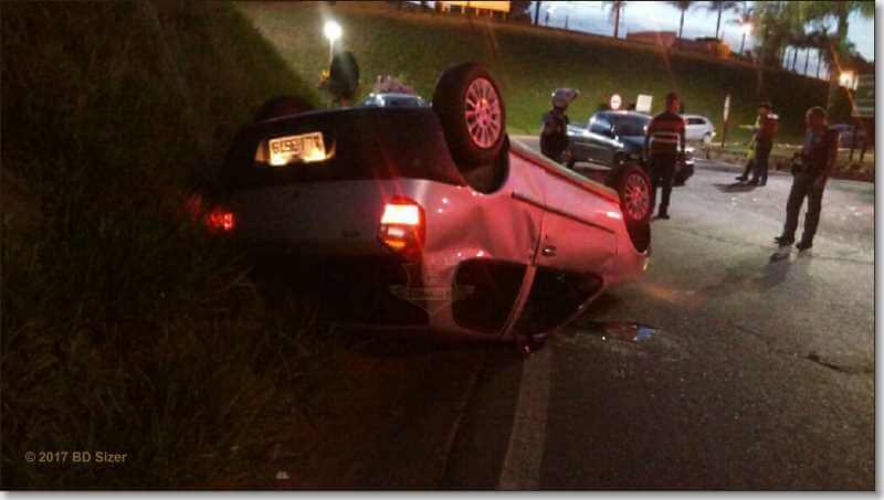 Segundo informações da PM,  mesmo o motorista da Picape estando pela rua Santa Iria,  preferencial,  este estava  aparente estado de embriaguez. O condutor do GM Corsa que supostamente teria avançado a preferencial na alça de acesso que liga a rodovia Washington Luís. Com o impacto o Corsa capotou, porém nenhum dos ocupantes  dos carros  se feriram com gravidade. O motorista Corsa acabou recebendo atendimento da ambulância de Ibaté. L.J.G, de 58 anos, causador do acidente, fez o teste do bafômetro e o resultado foi positivo (1,03). Ele foi encaminhado ao Plantão Policial, autuado em flagrante por embriaguez ao volante, mas colocado em liberdade após pagar três mil reais de fiança.