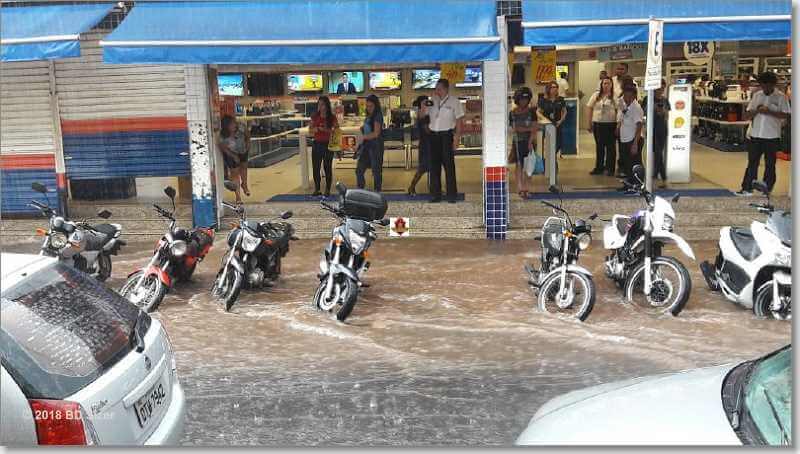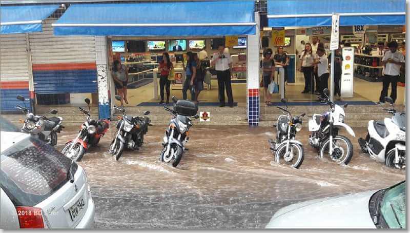 A região central ficou completamente alagada, como podemos ver nas imagens enviadas por um internauta do CVP. O Corpo de Bombeiros ficou em alerta. Lojas foram tomadas pela enxurrada.
