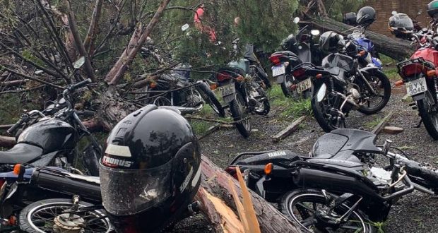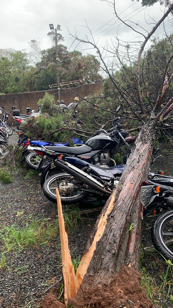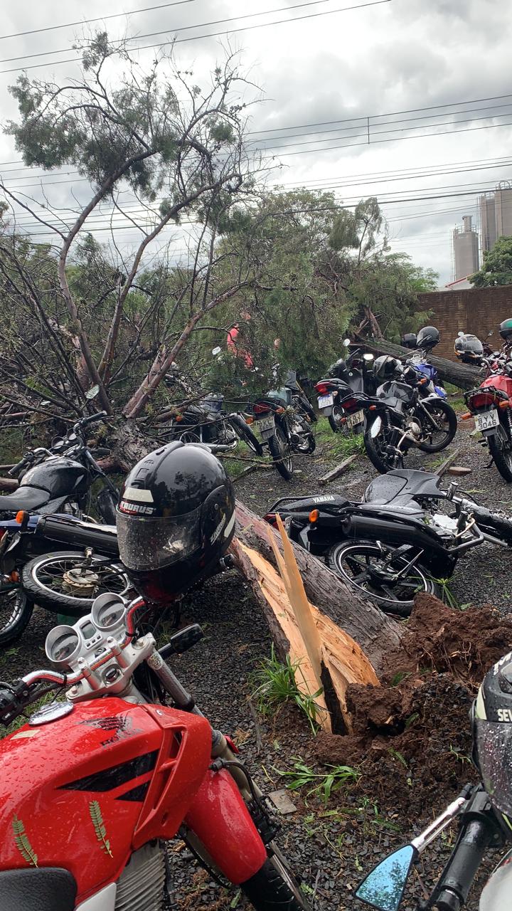segundo informações, não teve ponto de alagamento. Motos ficaram danificadas no estacionamento de uma empresa.