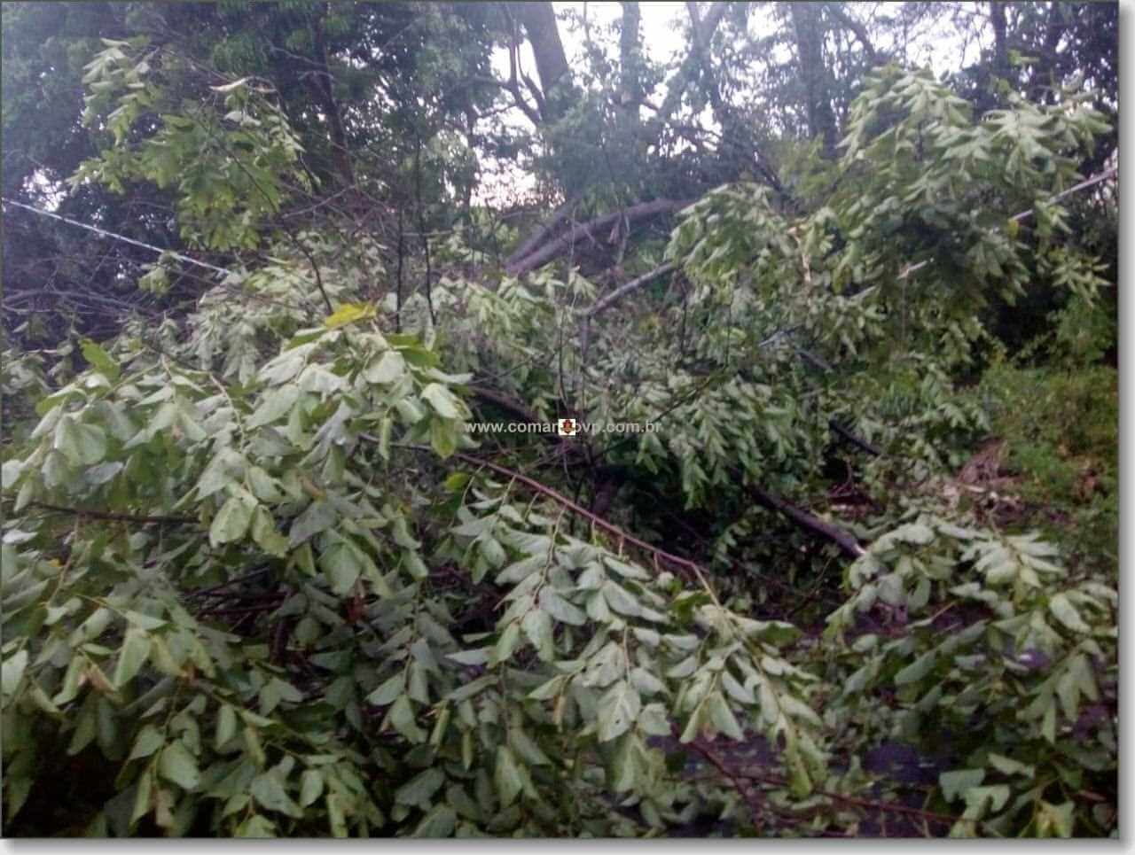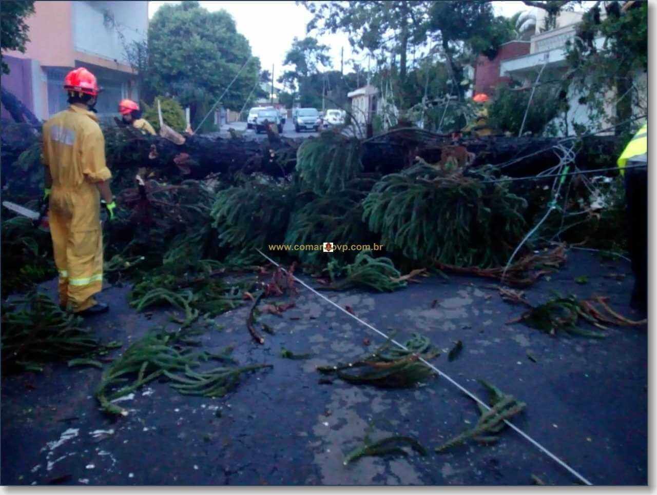 No bairro de Vila Nery,  uma enorme árvore de pinheiro caiu sobre afiação de um poste e danificou  uma perua Kombi que estava estacionada.  Outros pontos da cidade também tiveram  consequências de danos e inundações .