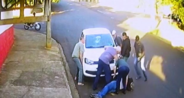 A vítima foi socorrida e encaminhada ao Hospital da cidade em estado grave, depois de ser atropelada e arrastada pelo veículo por aproximadamente 20 metros.