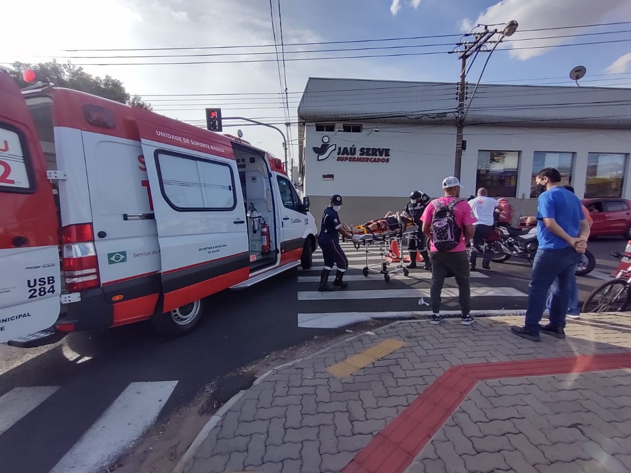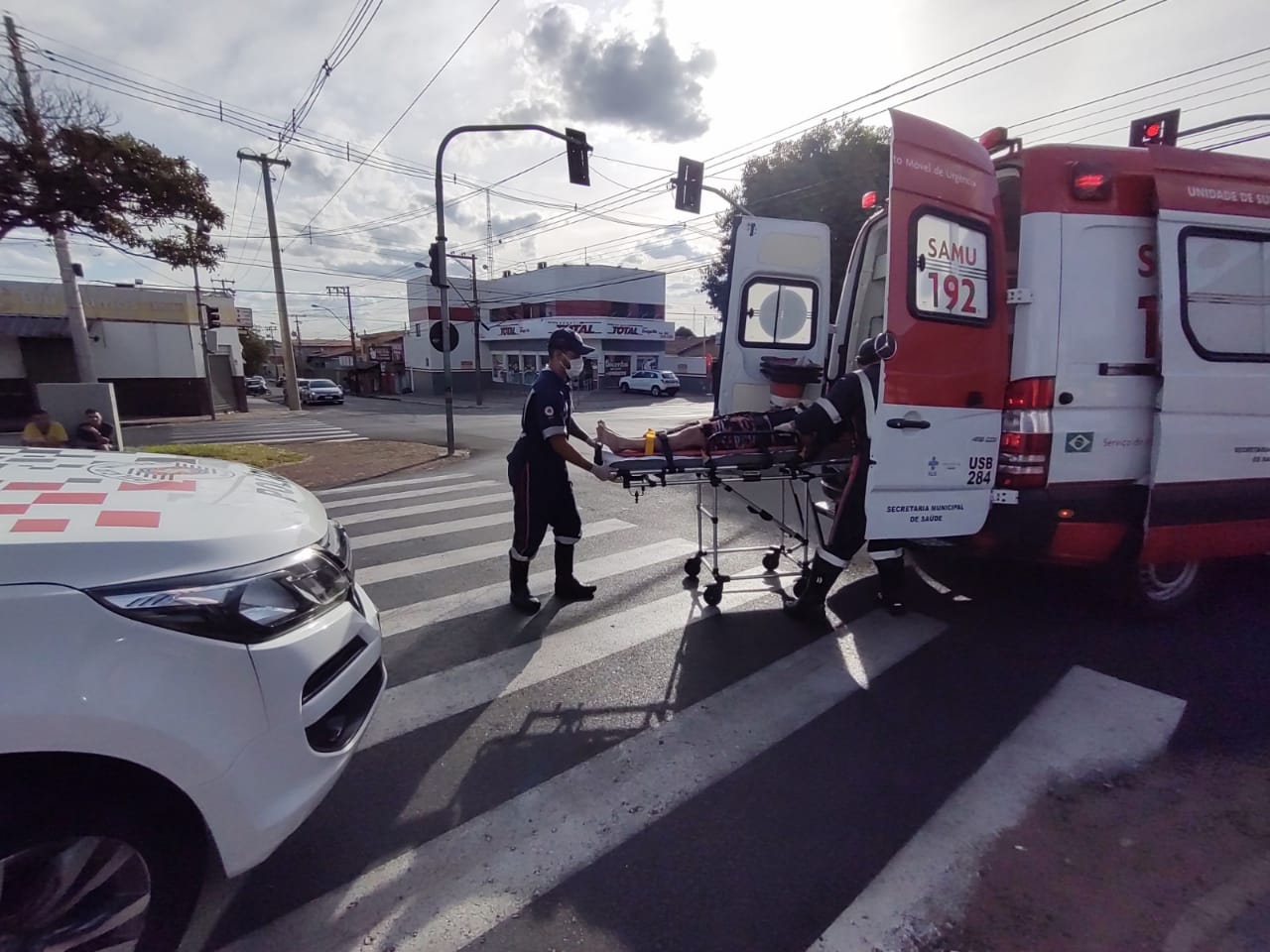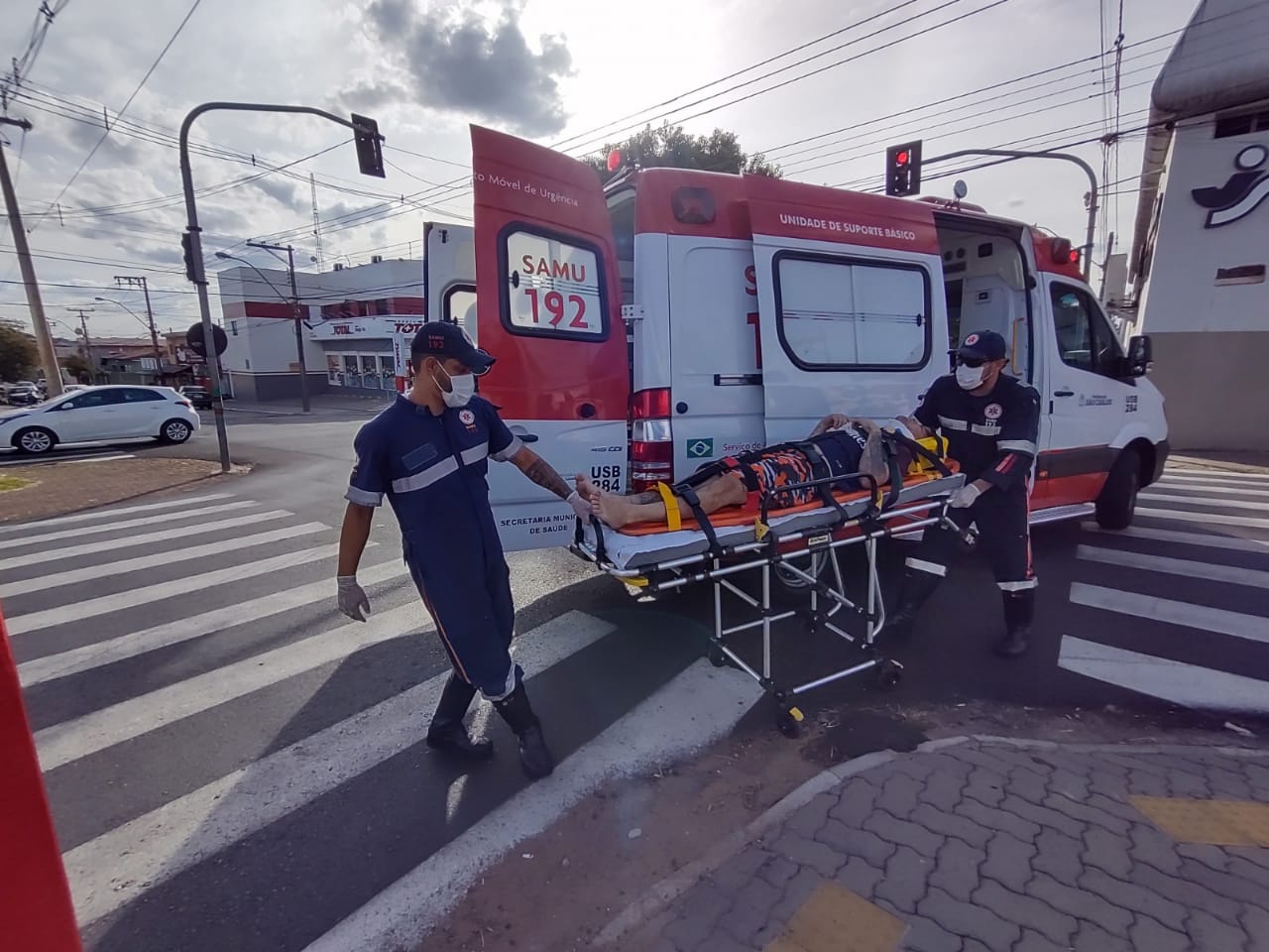 Um ciclista ficou ferido nesta tarde de quinta-feira, 1 de abril de 2021, no cruzamento da Travessa Sete, com a Av. Grécia, região do bairro Vila Prado, São Carlos-SP.